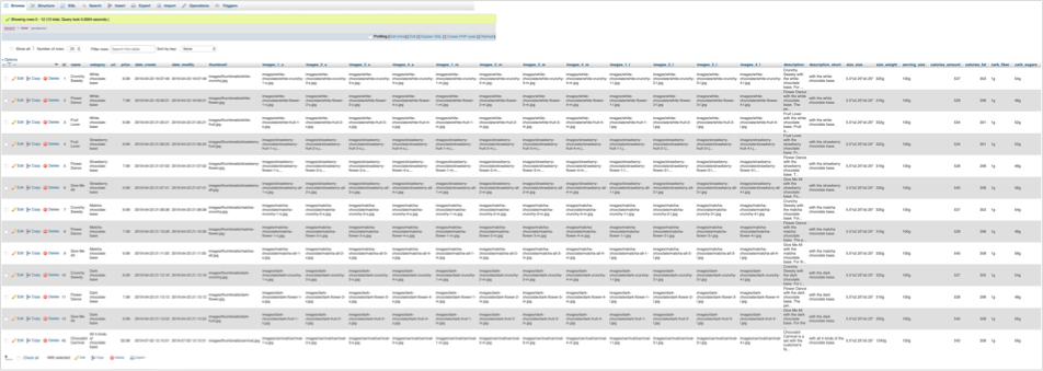 Once I was satisfied with the layout of the website, I started to incorporate the website with a database. I created a database at my host for all the products with information including name, price, description, nutrition facts, date created...etc.