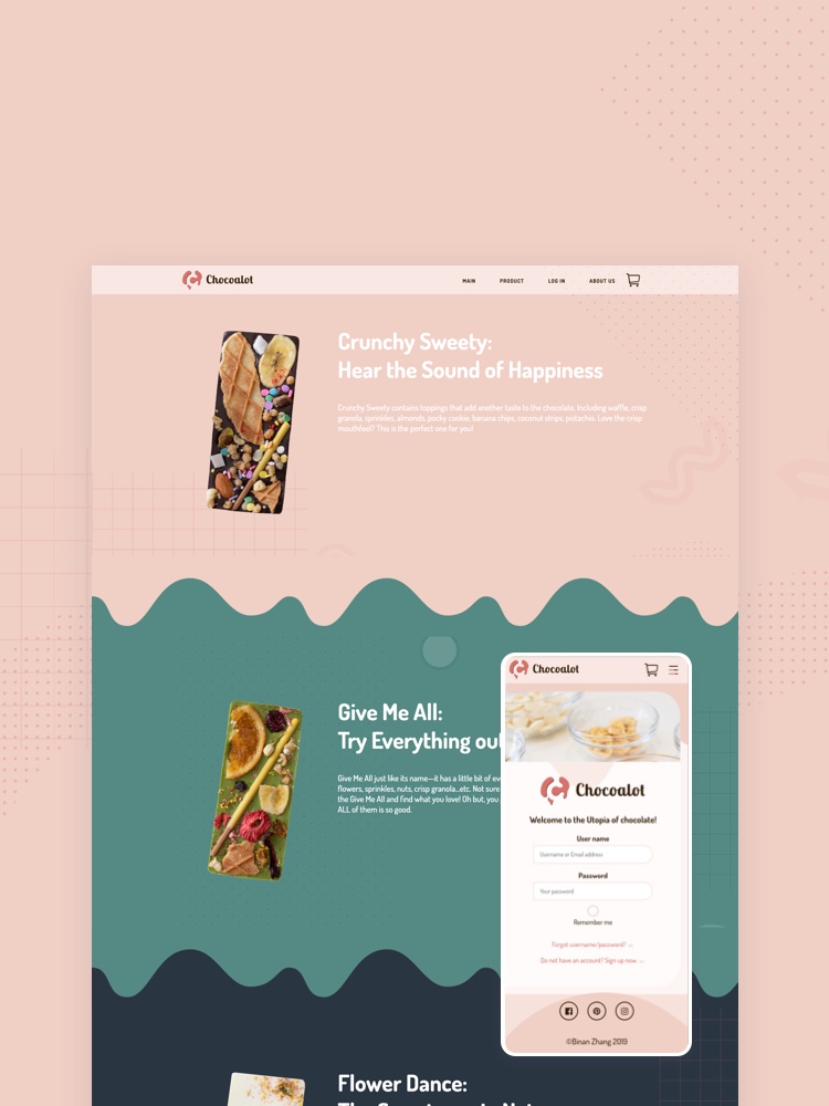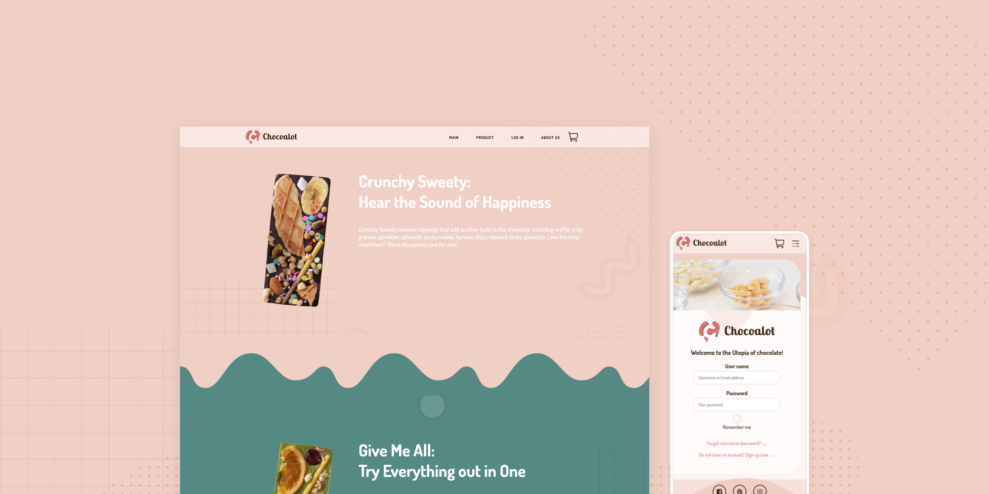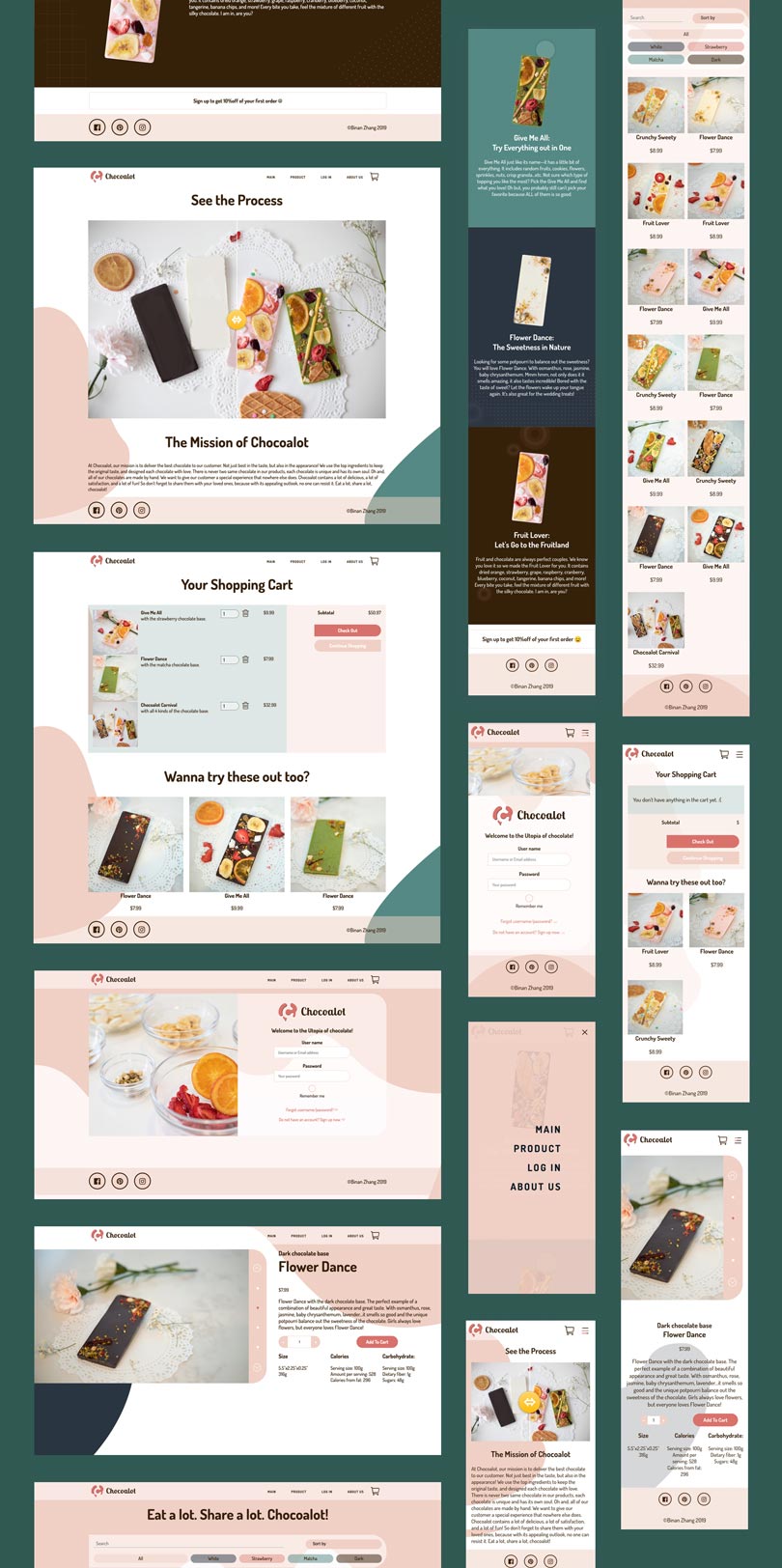 Chocoalot e-commerce website is responsive and can work on desktops, tablets, and mobile sized device. It also has some fun interactions. All content is original, chocolates are handmade by myself and photos are taken by myself as well.