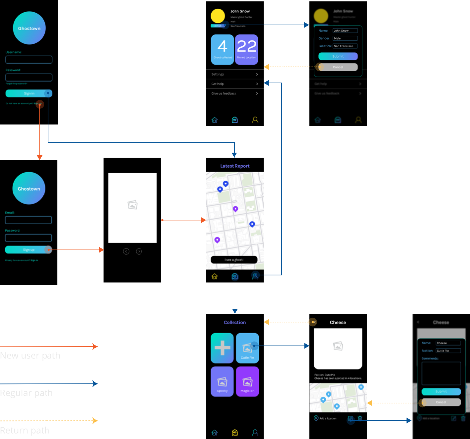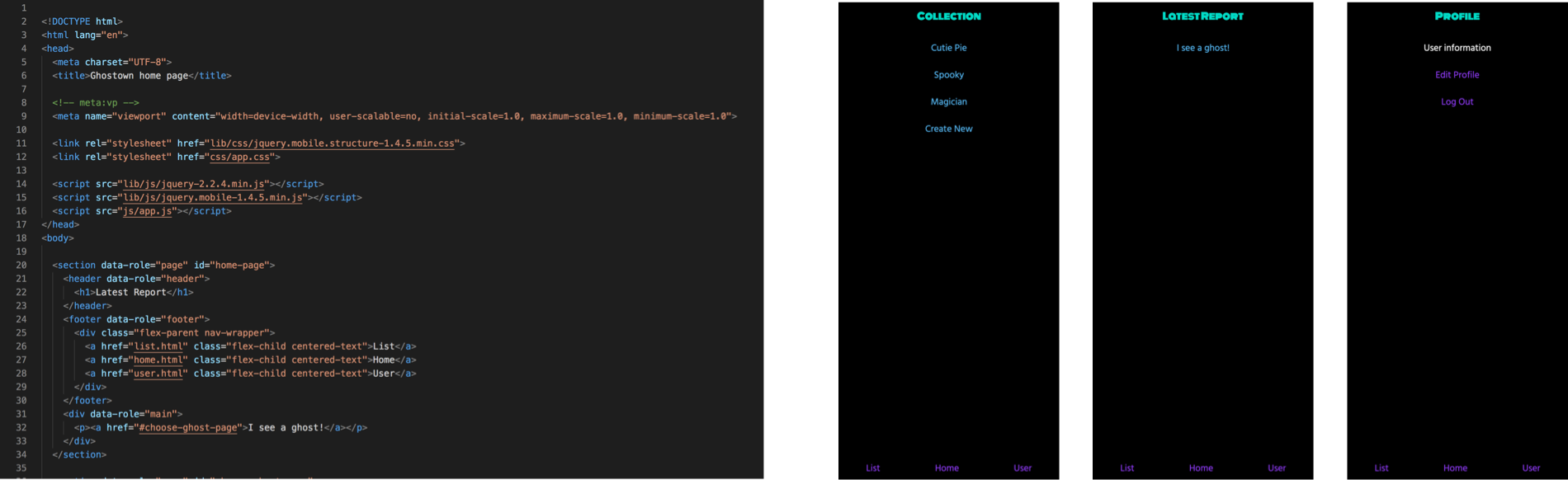 GhosTown is a fully coded web-based mobile app design project. It used HTML, CSS, JavaScript, and jQuery Mobile. It creates an interesting user experience to help users pay attention to their surroundings.