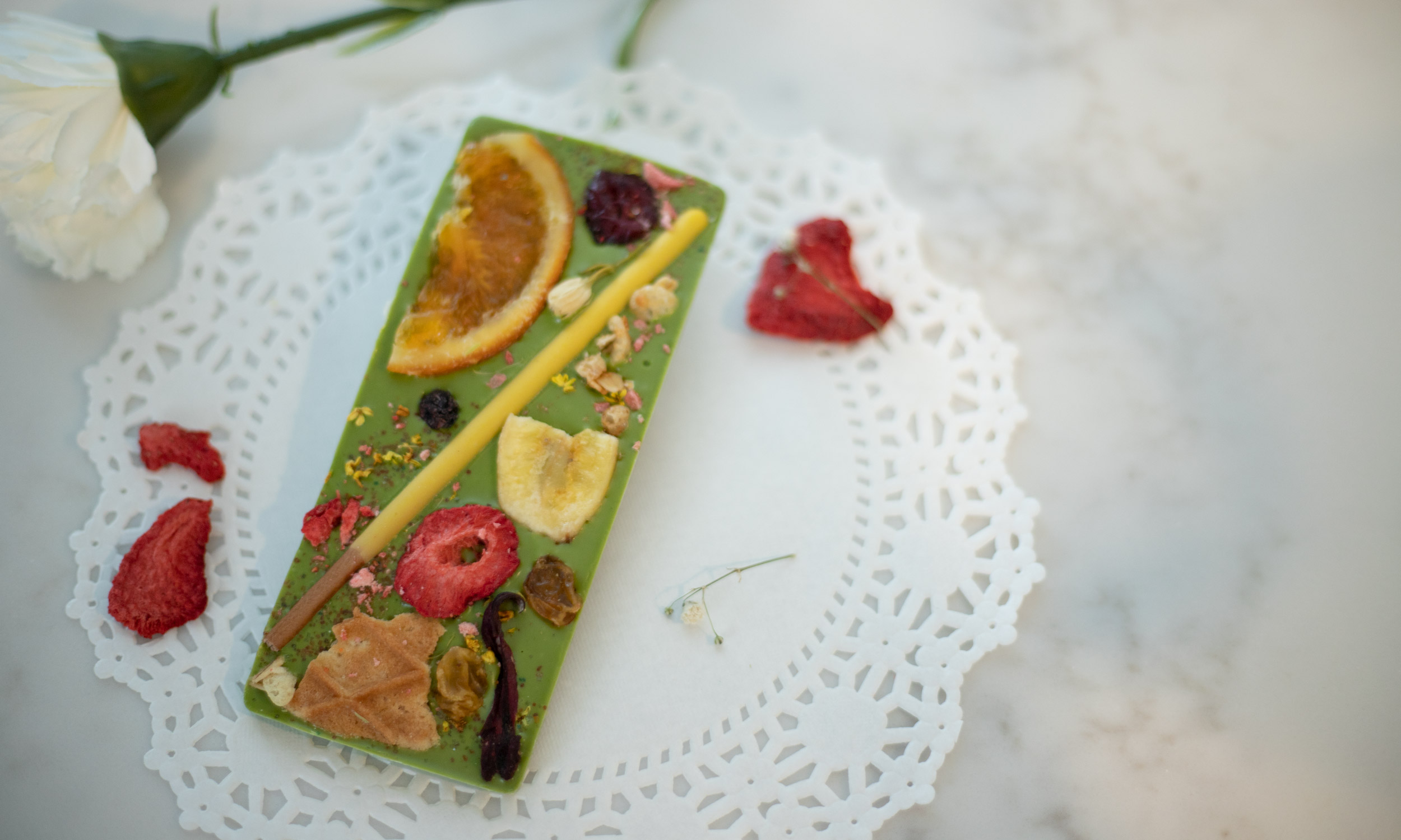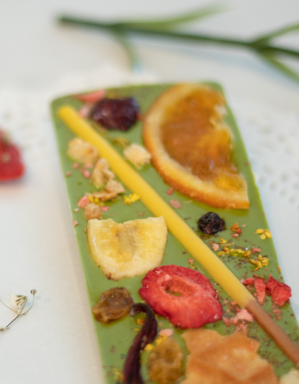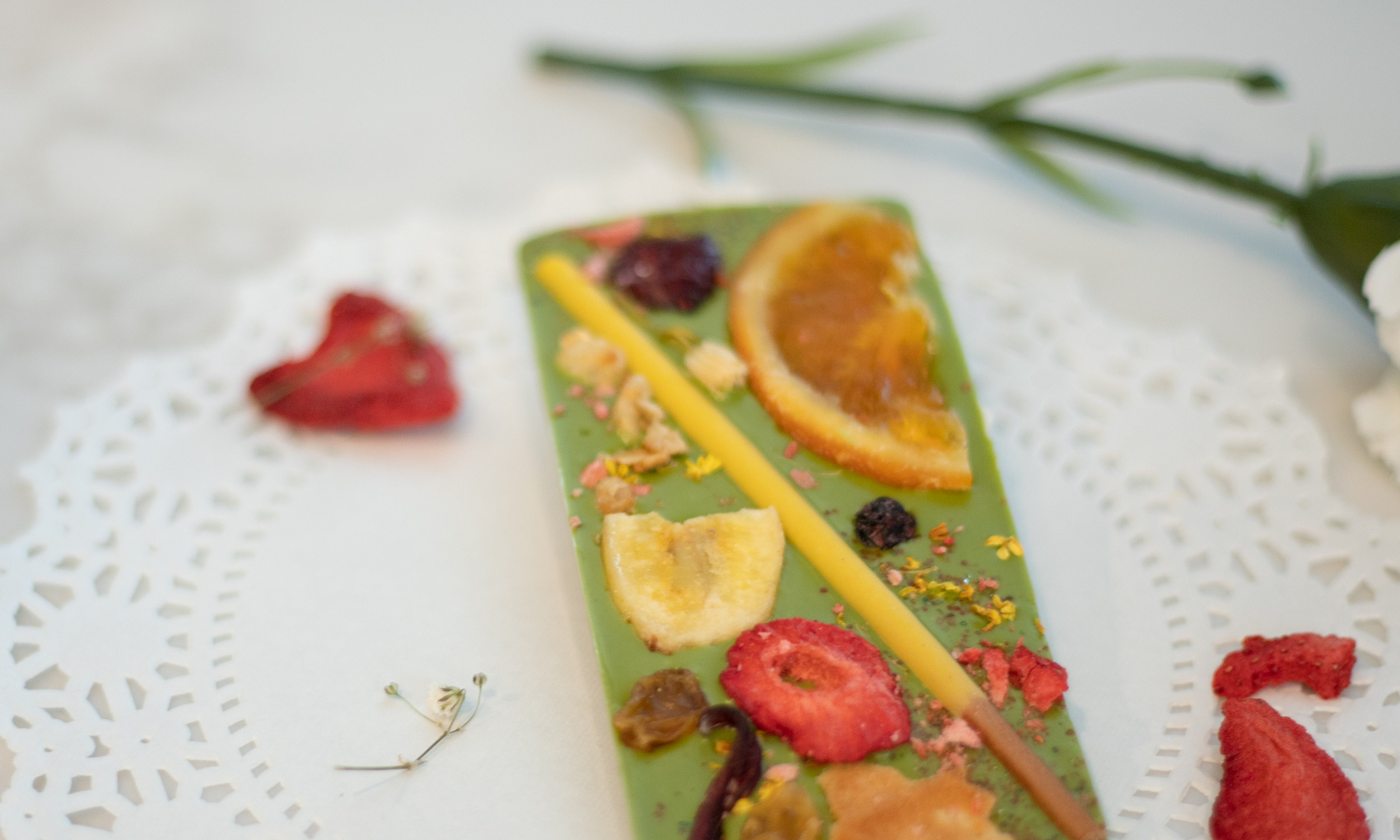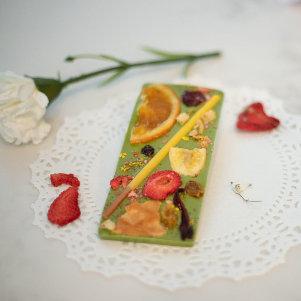 Give Me All with the matcha chocolate base. For the matcha chocolate lover who wants to try all the toppings at once. Toppings including fruits, cookies, flowers, sprinkles, nuts, crisp granola...etc. We gathered all the tasty toppings and combine them with our silky, yummy chocolate base. Hey you know one will not be enough!