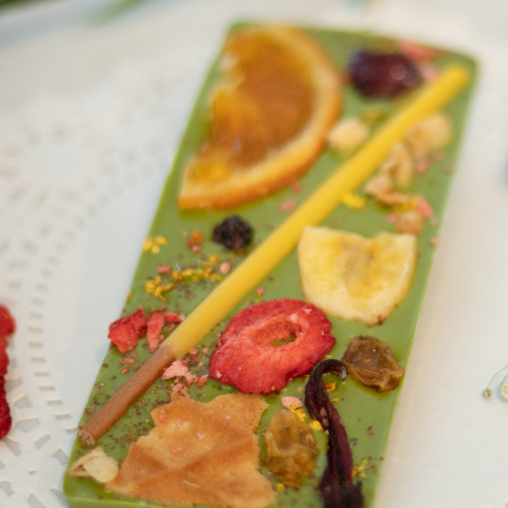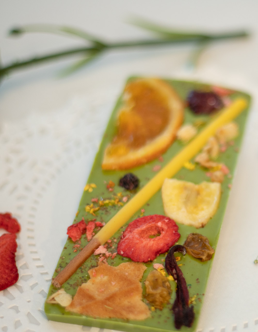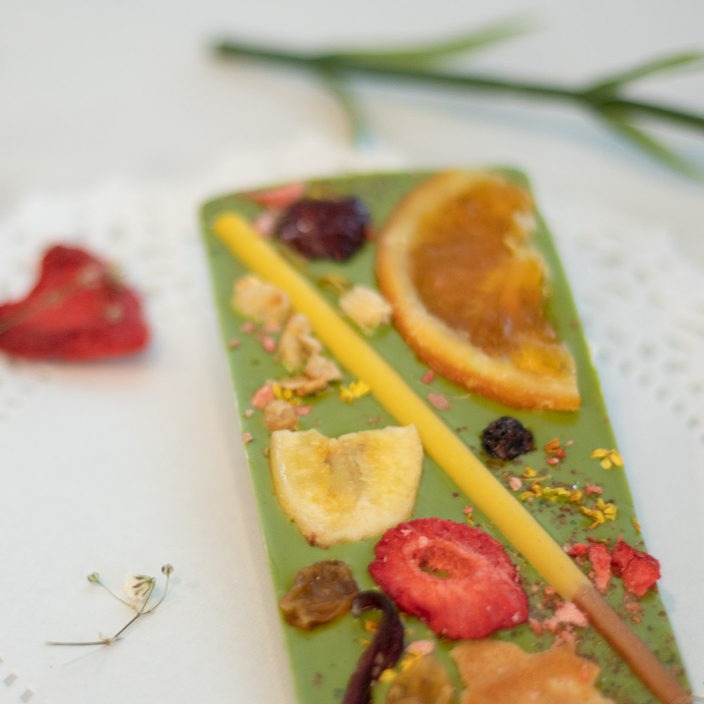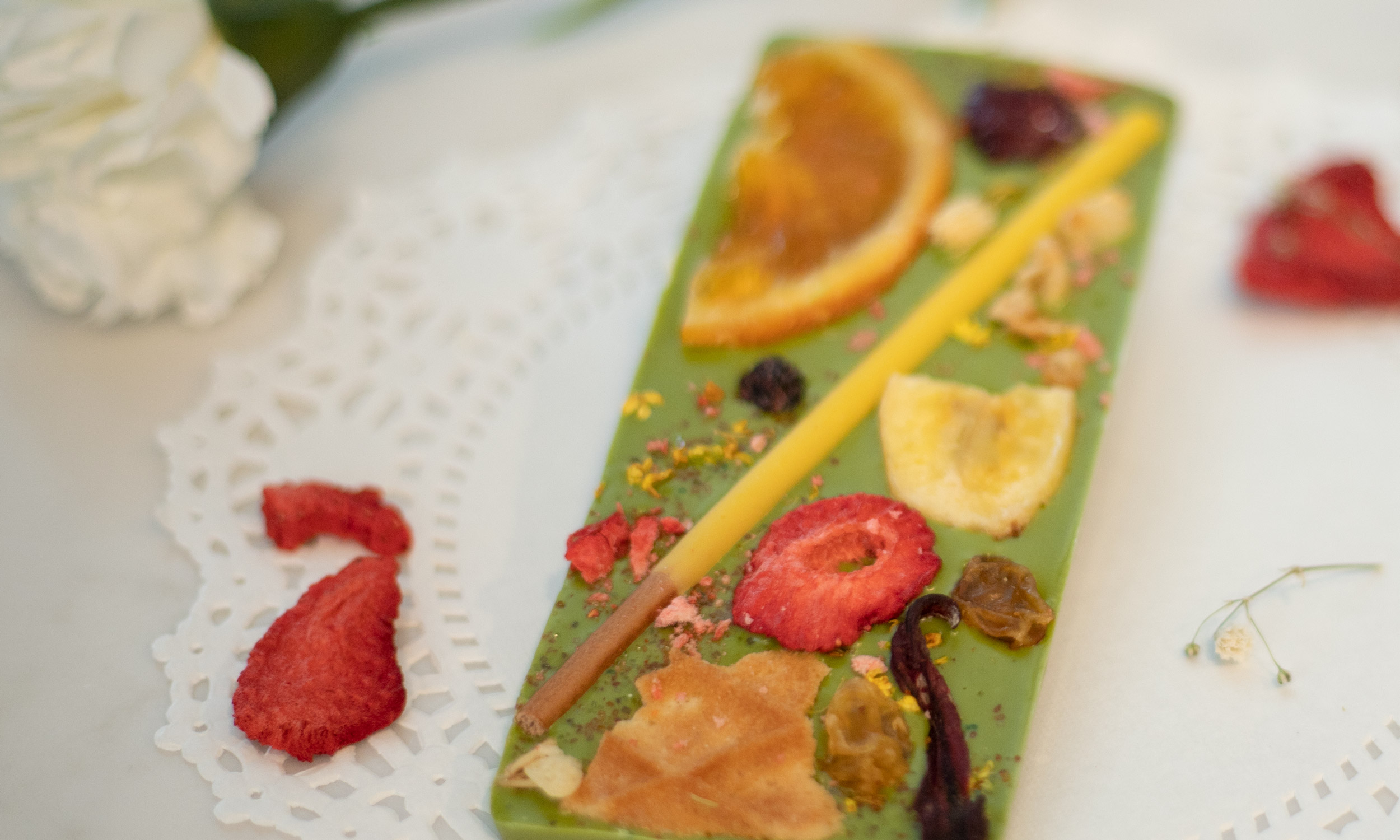 Give Me All with the matcha chocolate base. For the matcha chocolate lover who wants to try all the toppings at once. Toppings including fruits, cookies, flowers, sprinkles, nuts, crisp granola...etc. We gathered all the tasty toppings and combine them with our silky, yummy chocolate base. Hey you know one will not be enough!